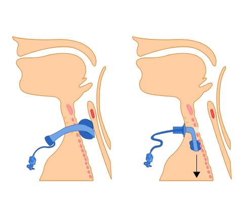 Misplacement of tube - within tissues around trachea or to main