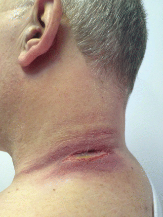 Whatever fixation device you use, check regularly that it isn’t causing pressure problems from the tracheostomy tube itself or from the ties. This is a particular problem with critically ill patients who are sedated and cannot position themselves, on vasopressors, those with pre-existing skin problems or the obese. Ensure that you can get one finger between the tie and the neck skin, ensuring it isn’t too tight.