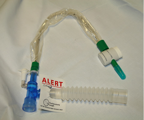 Different lengths of suction catheter are available for tracheostomy tubes and for endotracheal tubes. Using the wrong combination will cause ineffective suction or risk trauma with inappropriately deep catheter insertion. The alert tag on the tube (Fig 1) identifies the length of the catheter unit as suitable for a tracheostomy or endotracheal tube.