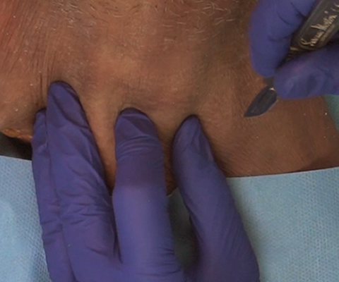 If the midline and/or bony structures cannot be identified, a vertical incision through the skin only is recommended.