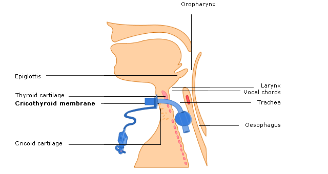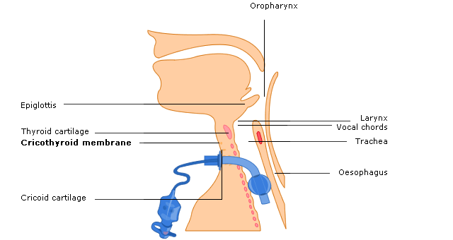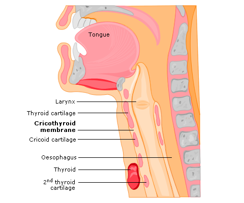 cross-section to demonstrate the path of the tracheostomy stoma and any