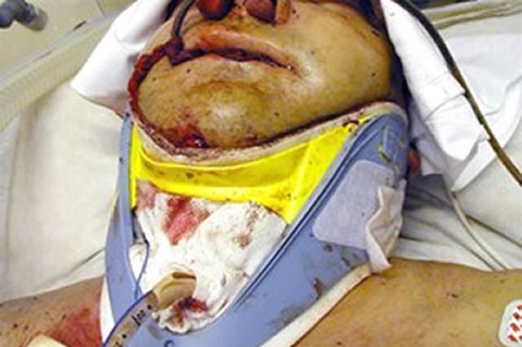 Fig 5b shows a larger cuffed tracheostomy tube, sited lower in the neck.