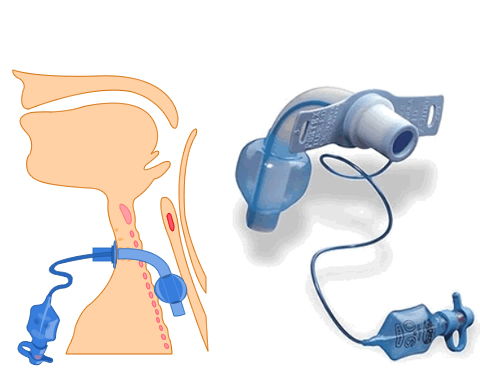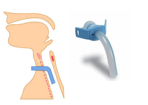 Fig 7 shows a cuffed tracheostomy tube. The cuff seals off the upper airway. When the tube is correctly positioned within the trachea, gas can only move into and out of the lungs via the tracheostomy tube.
