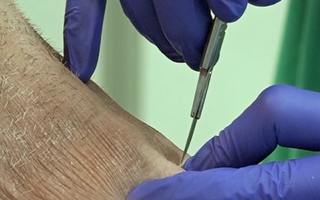 The incision can be made with a scalpel blade or percutaneously by the Seldinger technique, using a needle/wire/dilator (Fig 2).