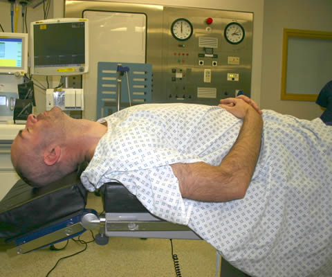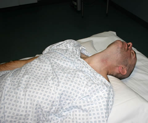 The first option for patient positioning is the one you would use for routine airway management, i.e. 'sniffing the morning air' (Fig 1). However, the sniffing position does not provide optimal conditions for cricothyroidotomy, where full neck extension is ideal.