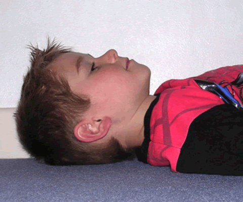 - Lying on a flat surface, the effect on the airway of the position