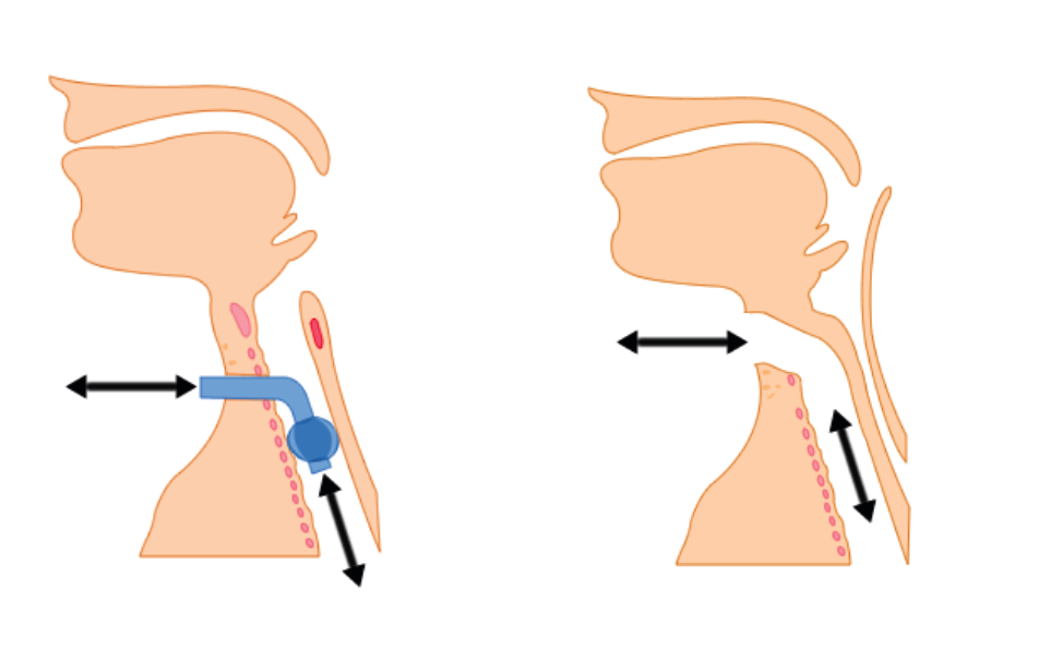 Answer: If the upper airway is obstructed or if there is a cuff-inflated tracheostomy tube in situ then gas will only flow via the neck, just like a laryngectomy. Remember that a laryngectomy is a permanent procedure.