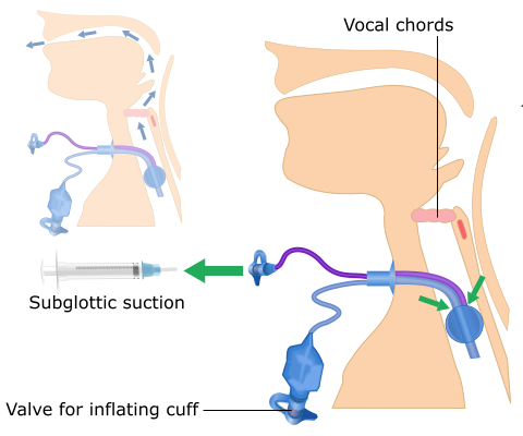 For some patients, it is not possible to deflate the tracheostomy tube cuff. This is usually because high pressure ventilation is required or there is risk of ‘aspirating’ oral or gastric secretions or contents into the airway.