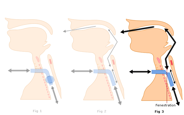 Deflating the cuff, or better still, using an un-cuffed tube will allow some airflow through the upper airway as in the centre figure (Fig 2).