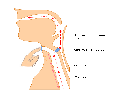 Oesophageal speech is now achieved by forcing exhaled air into the oesophagus in expiration through a one-way tracheo-oesophageal prosthetic (TEP) valve (Fig 1).